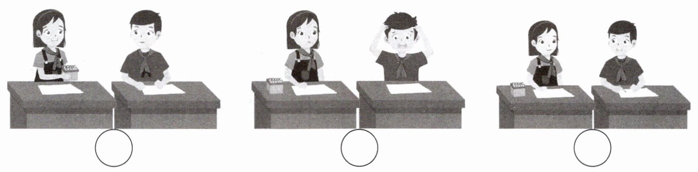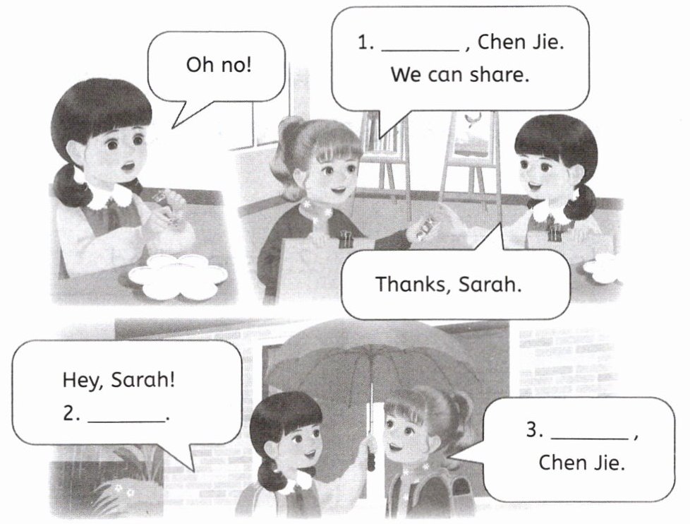 Ⅱ. Look and choose.(英语课上,齐诚了解到陈杰和Sarah的日常相处方式。请读图,从方框中选择合适的句子补全对话,将标号填写在横线上。)