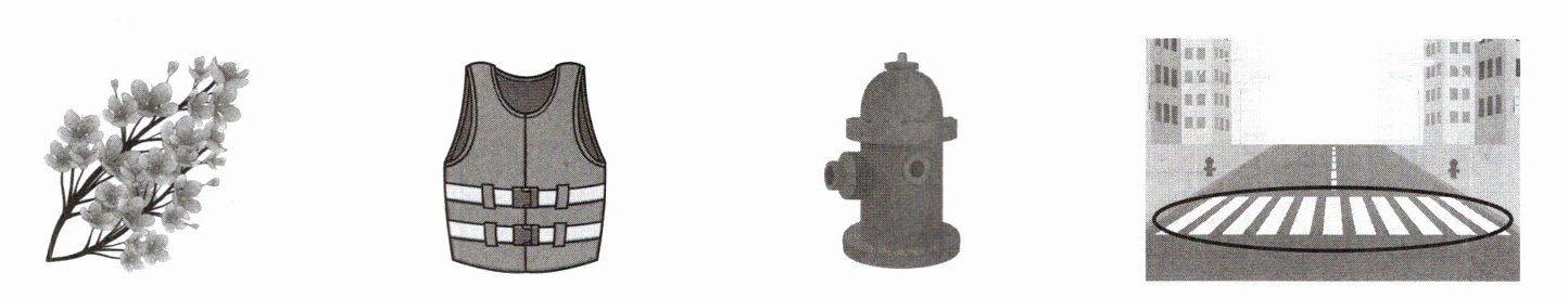 (为了让同学们更深入地理解颜色,Mr Jones展示了一些生活中的物品,这些物品是什么颜色?请看图并思考,选择合适的单词,将标号填在括号内。)