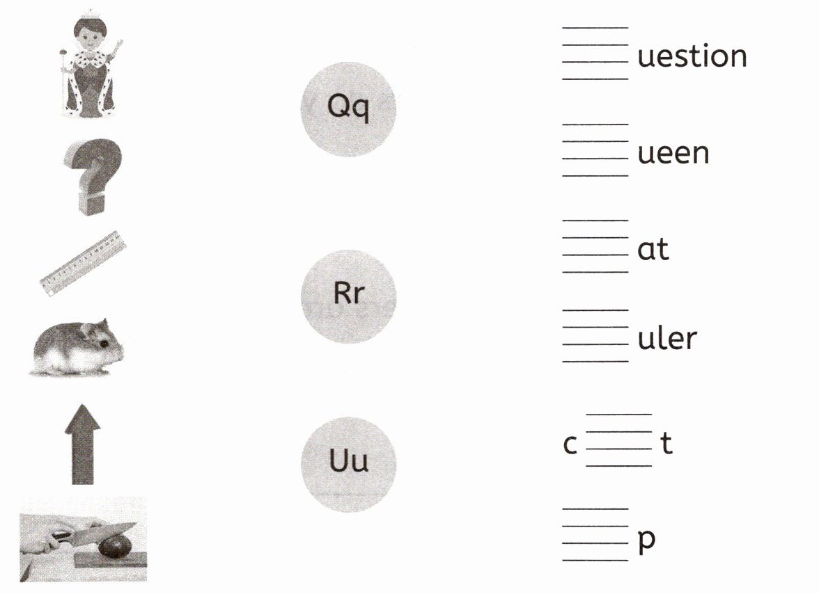 作贴上了标签。请听录音,将图片与对应的字母、单词连线,并填上所