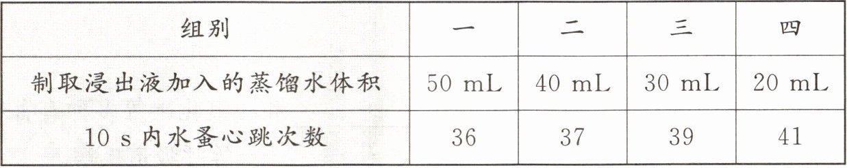 |制取浸出液加入的蒸馏水体积|50 mL|40 mL|30 mL|20 mL|