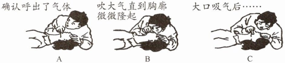6. 人工呼吸是对某些意外事故导致呼吸暂停病人的急救措施。请据图回答下列问题。