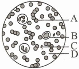 7. 下图为人血涂片在显微镜下的一个视野图,请据图回答下列问题(用图中代号回答)。