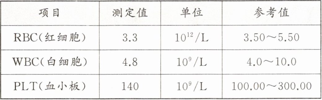 3. 根据血常规检验报告单的部分项目,判断此人可能患有(