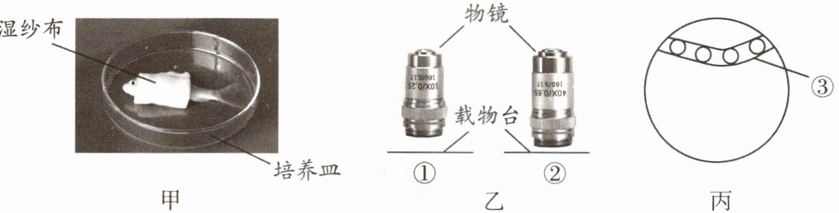 )A.观察时,应时常用滴管往甲中的纱布上滴水以保持湿润,保证小鱼正常呼吸