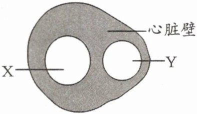 5. 某生物兴趣小组在猪心脏的下半部横切一刀后,所得到的横切面如图所示,其中 X、Y 分别是心脏的两个腔。下列说法正确的是(
