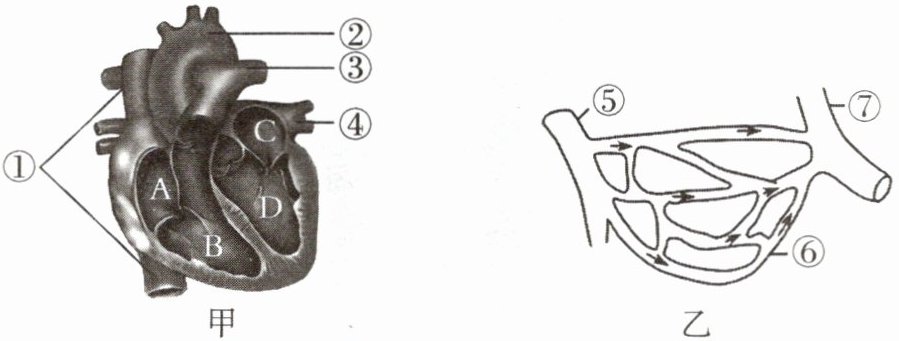3. 如图甲、图乙分别表示心脏和血管示意图,则下列说法错误的是(