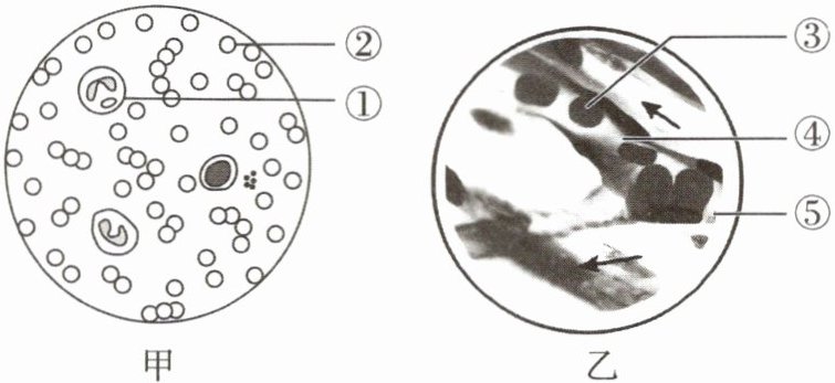 3.甲、乙分别为用显微镜观察人血涂片和小鱼尾鳍内的血液流动视野图。下列叙述正确的是(
