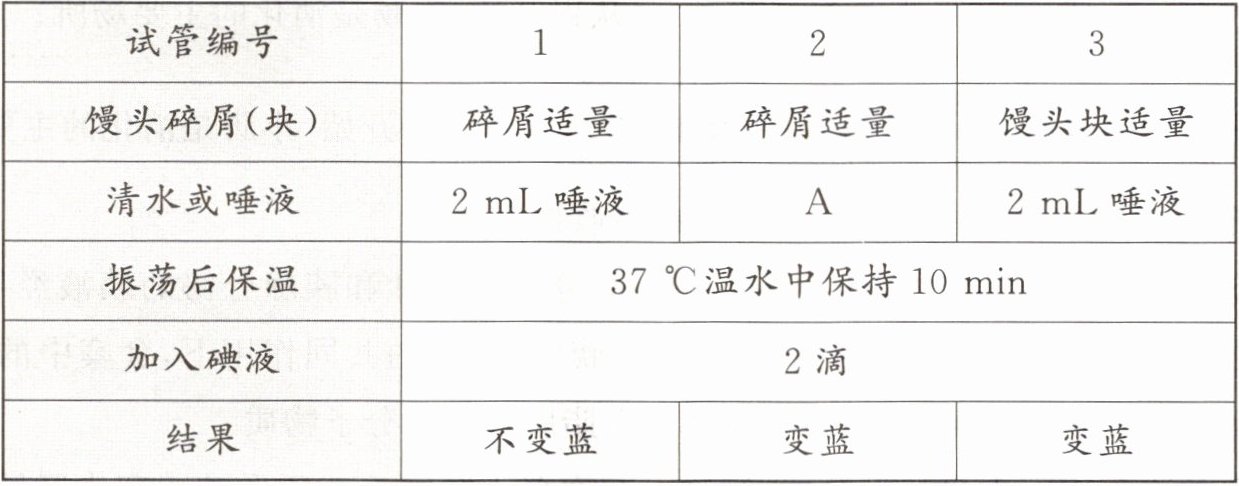 为了证明唾液对馒头有消化作用,在2号试管的A处应加入
