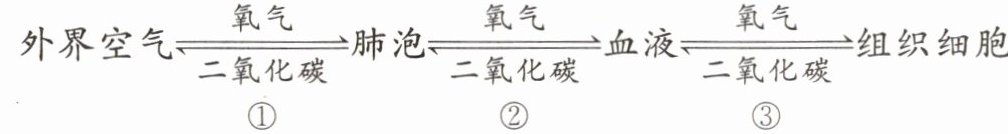 12.人体细胞要获得氧气、排出二氧化碳,必须经过如下①②③等过程来完成,下列有关说法错误的是(
