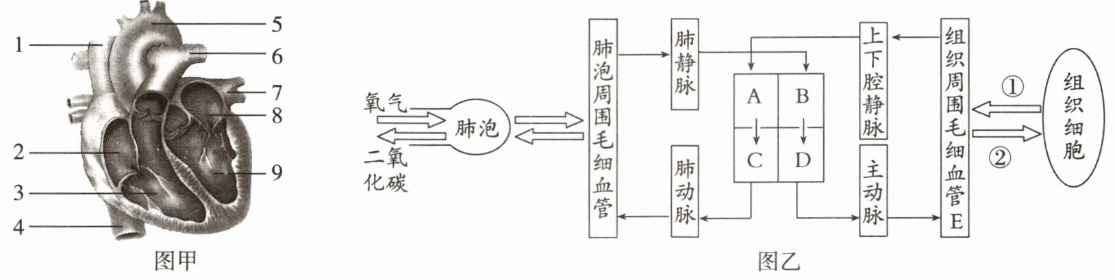 ,能保证血液向心脏方向流动。(3)图甲中的2代表图乙中的