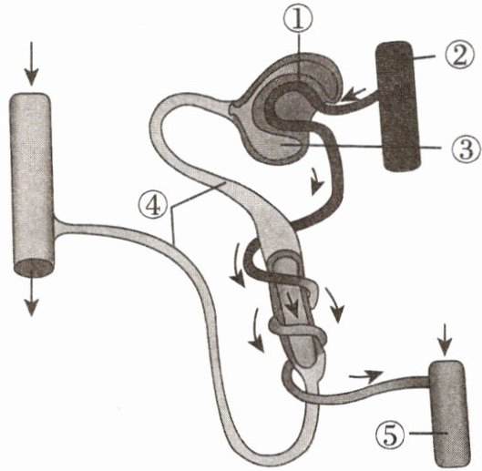 例 1 肾脏是人体精密的过滤器,是人体形成尿液的场所,而肾单位则是肾脏结构和功能的基本单位。如图为肾单位结构示意图,则下列说法正确的是(