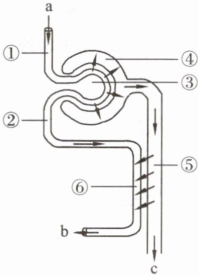 6. 如图为肾单位结构及尿液形成示意图,请结合图示回答下列问题。