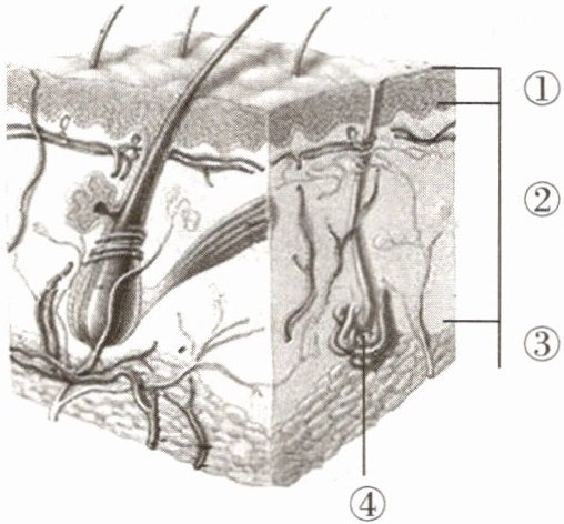 (3) 皮肤的附属结构主要是由表皮细胞特化形成的,图中属于皮肤的附属结构的是[