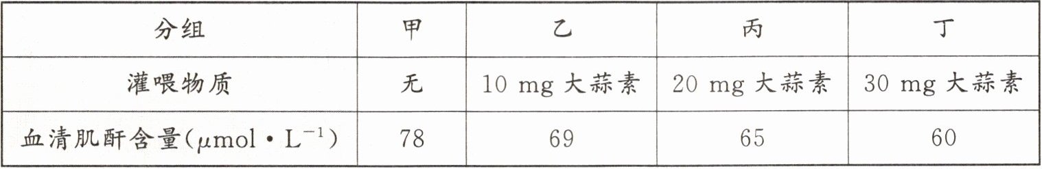 (3)分析数据可知,在一定范围内,灌喂大蒜素的剂量越大,血清肌酐的含量越