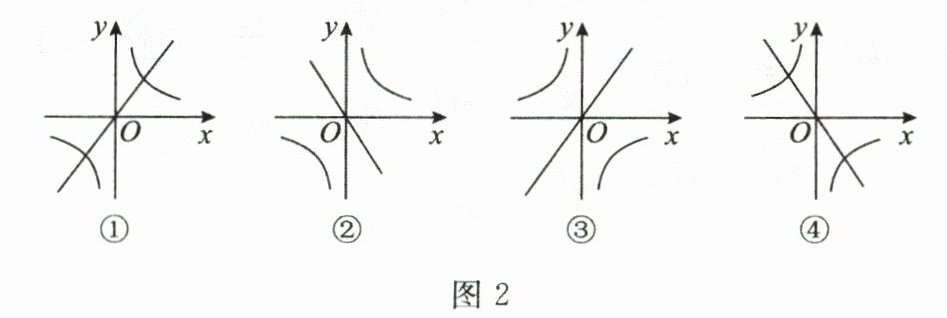 6. 已知正比例函数$ y = k _ { 1 } x $和反比例函数$ y = \frac { k _ { 2 } } { x } $在同一平面直角坐标系下的图象如图2所示,其中符合$ k _ { 1 } \cdot k _ { 2 } > 0 $的是(