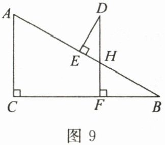 16.(14 分)如图 9,在△ABC 中,∠C = 90°,DE⊥AB 于点 E,DF⊥BC 于点 F,DF 交 AB 于点 H. 求证:△DEH∽△BCA.
