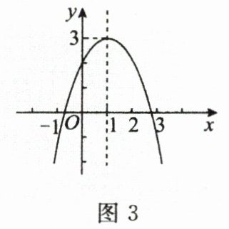 12. 二次函数$y = ax^{2}+bx + c$的图象如图3所示,有下列结论:①$b^{2}-4ac\gt0$,②$2a + b = 0$,③$abc\gt0$,④$4a + 2b + c\gt0$,⑤关于$x$的一元二次方程$ax^{2}+bx + c - 3 = 0$有两个相等的实数根,其中正确的结论有(