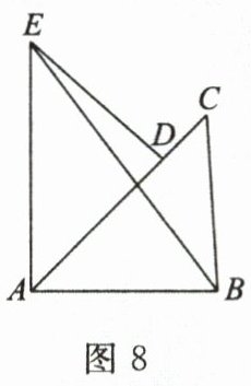 20. (10分)如图8,将$\triangle ABC$绕点$A$逆时针旋转$45^{\circ}$得到$\triangle ADE$,$\angle BAC = 45^{\circ}$,$AB = 3$,$AC = 4$.