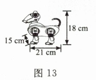 (2)如图11、图12,把矩形硬纸板的四角剪去四个相同的小矩形,使$EF$和$HG$两边恰好重合且无重叠部分,折成一个有盖的长方体收纳盒,盒子的底面积为$702cm^{2}$,小丽家里有一个玩具机械狗,机械狗的实物图和尺寸大小如图13,请通过计算判断玩具机械狗能否完全放入该收纳盒.
