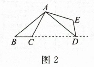 5. 如图 2,将 $ \triangle ABC $ 绕点 $ A $ 逆时针旋转 $ 100^{\circ} $,得到 $ \triangle ADE $. 若点 $ D $ 在线段 $ BC $ 的延长线上,则 $ \angle B $ 的度数为(