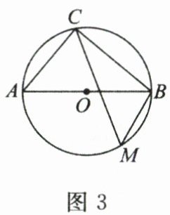 6. 如图3,$ AB $ 是 $ \odot O $ 的直径,点 $ C $,$ M $ 在 $ \odot O $ 上,若 $ \angle ABC = 40° $,则 $ \angle BMC $ 的度数是(