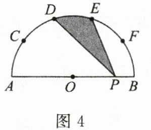 10. 如图4,$AB$为半圆$O$的直径,$C$,$D$,$E$,$F$是$AB$的五等分点,$P$为直径$AB$上的任意一点. 若$AB = 4$,则图中阴影部分的面积为(
