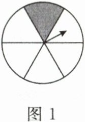 5. 如图 1,将一个圆形转盘分成 6 个全等的扇形,任意旋转这个转盘 1 次,当转盘停止转动时,指针指向阴影部分的概率是(