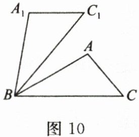 18. (10分)如图10,在$\triangle ABC$中,$\angle A = 100^{\circ}$,$\angle ABC = 30^{\circ}$,将$\triangle ABC$绕点$B$逆时针旋转$50^{\circ}$后得到$\triangle A_{1}BC_{1}$.求证:$A_{1}C_{1}// BC$.