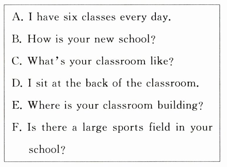 B:It’s large. There are 45 student desks in it. And a teacher’s desk is in front of the blackboard.