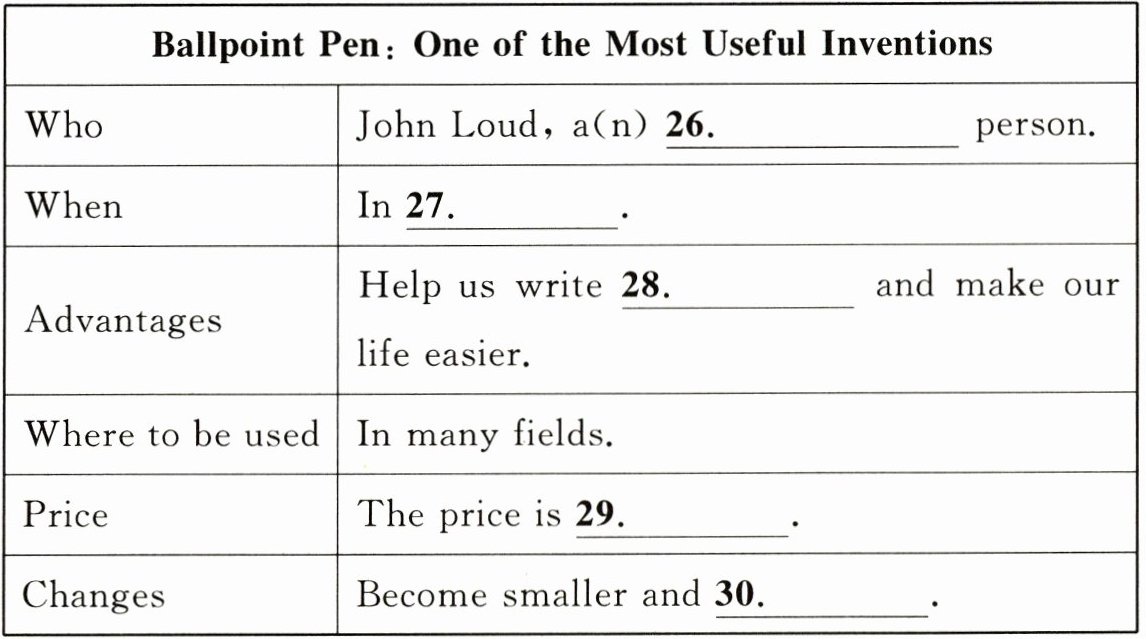 听一篇短文,根据短文内容填入所缺信息。每空一词。读三遍。