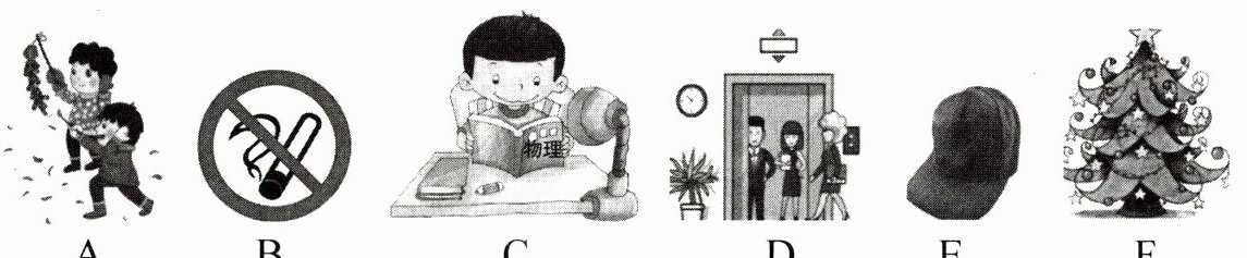 一、听句子,选择与你所听到的句子内容相符的图片。有一幅图是多余的。读两遍。(每小题1分,共5分)