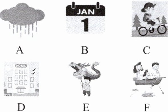 你将听到五个句子,请选出与所听句子内容相符的图片,有一幅图是多余的。每个句子读两遍。