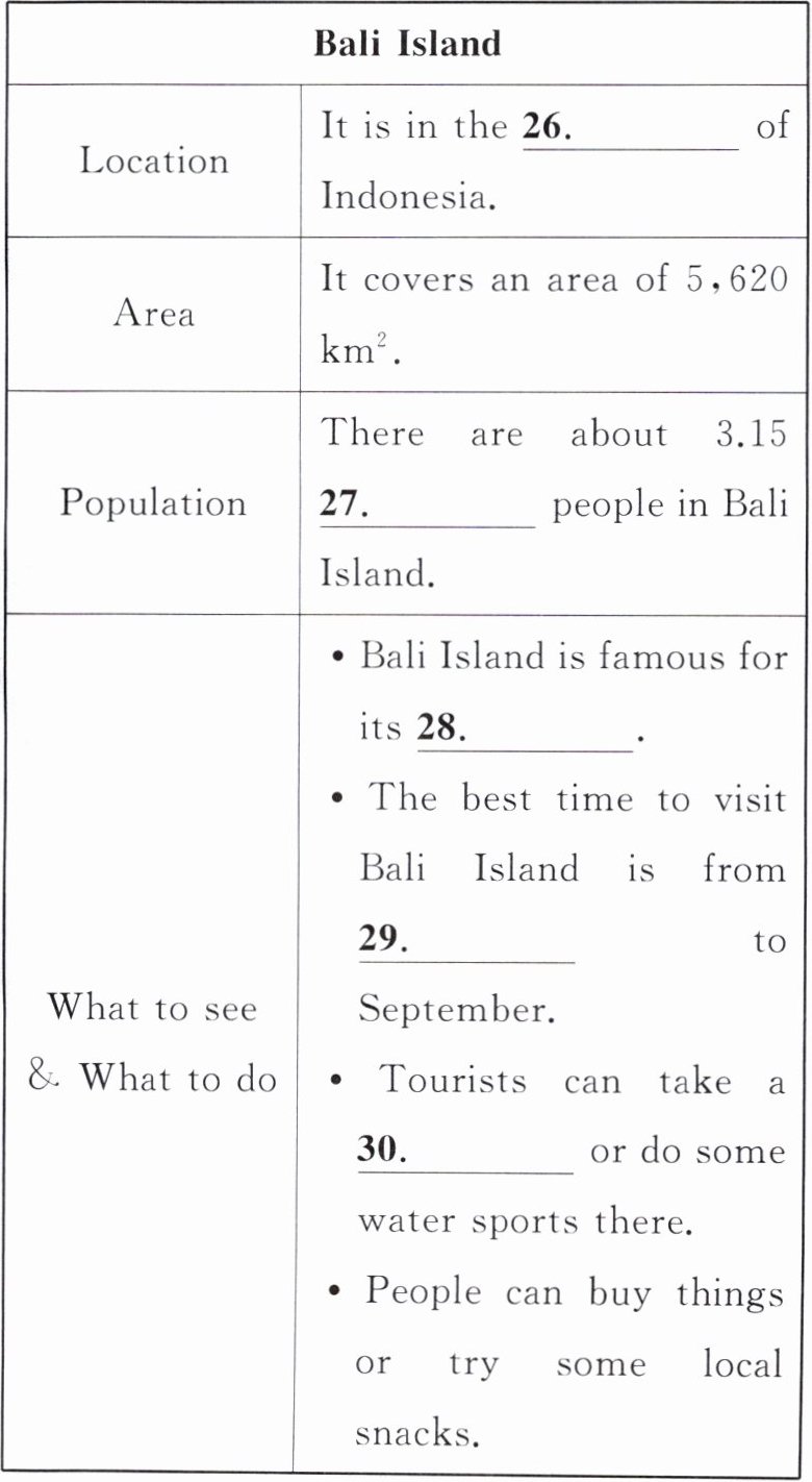 你将听到一篇短文,请根据短文内容,将所缺信息填在相应的横线上,每空一词。短文读三遍。