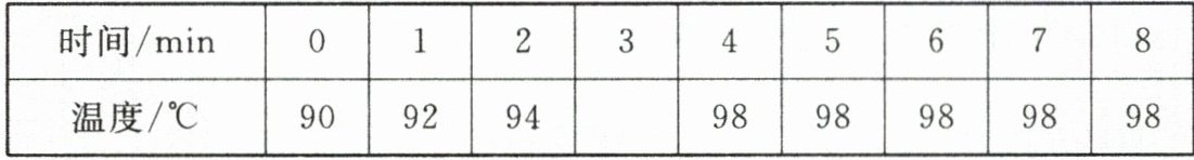 (1)当水温升到 $90^{\circ}C$ 时,每隔 $1\min$ 记录一次温度计的示数,直到水沸腾 $5\min$ 后停止读数,部分数据记录如下表所示,其中第 3 次数据没有记录,当时温度计示数如图 11 甲所示,此时温度为