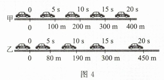 7. 图 4 记录了甲、乙两辆汽车在平直公路上行驶时,在某段时间内的运动过程。关于甲、乙两车的运动情况,下列说法正确的是(