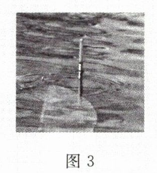 6. 钓鱼时鱼漂静浮于水面,如图 3 所示。某次鱼咬钩后,鱼漂从露出水面的长度为 6 cm 竖直向下运动到露出水面的长度为 2 cm 的过程,所用时间为 0.4 s,则该运动过程中鱼漂的平均速度为(