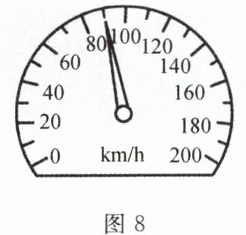 19. 一辆汽车正在高速公路上行驶,某时刻其速度计如图8所示,则此时汽车速度为