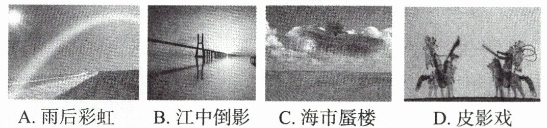 2. 在我国古书《墨经》中最早记载了小孔成像实验。下列四种现象中,与小孔成像原理相同的是(