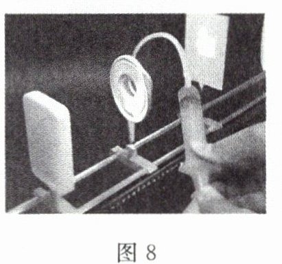 12. 小华用弹性膜充水制作了一个水凸透镜,通过注射器注水或抽水来改变透镜的厚度,用其模拟眼睛看物体的实验装置如图8所示。模拟正常眼睛时,固定透镜,将一个F形光源放在合适的位置后,调节光屏得到清晰的像,此时光源放在透镜2倍焦距以