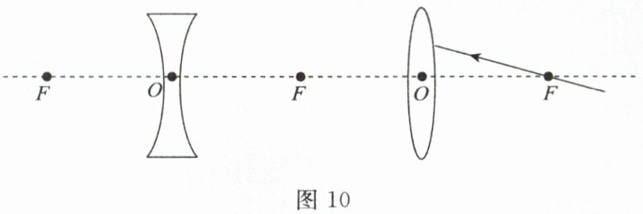 15. 如图10所示,一束光射向凸透镜,请画出该光经过凸透镜、凹透镜的折射光路。