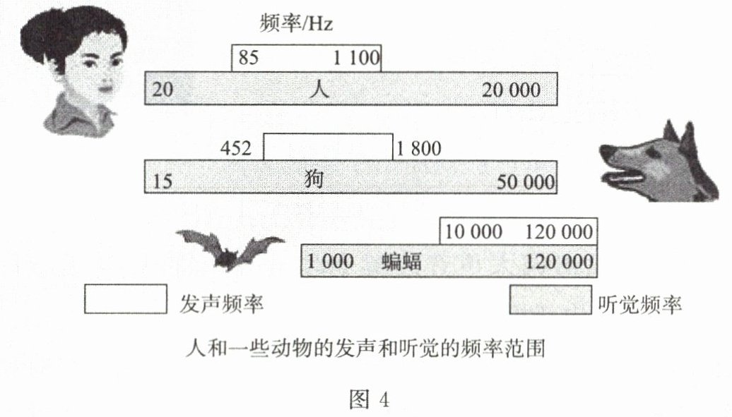 10. 生活中一些动物的听觉比人灵敏。请根据如图 4 所给信息,判断下列说法错误的是(