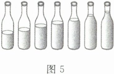 11. 小利在 7 个相同的玻璃瓶中灌入不同高度的水,制成了一个水瓶琴,如图 5 所示。对着瓶口吹气,发出的声音是由瓶中