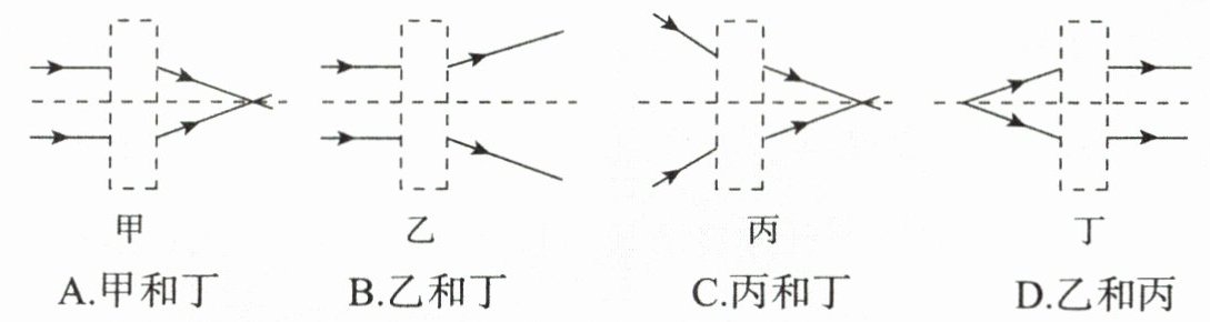 7. 在下列虚线框中放入凹透镜,可使光路图成立的是(
