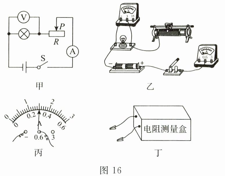 ,使电压表示数为2.5V,此时电流表的示数如图16丙所示,电流表的示数为0.3