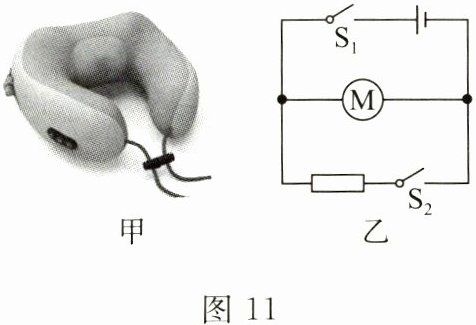 12. 可充电按摩仪(如图 11 甲)具有按摩和热敷两种功能,其工作电路如图 11 乙所示。下列说法正确的是(