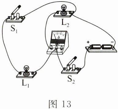 15. 如图 12 所示电路中,若开关 S₂ 闭合,S₁、S₃ 都断开,则灯 L₁、L₂ 的连接方式是