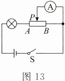 18. 如图13所示的电路中,滑动变阻器连入电路的电阻丝是