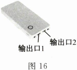 18. 如图 16 所示,某充电宝上有两个输出口,可同时给两台手机充电,充电宝两个输出口的连接方式是
