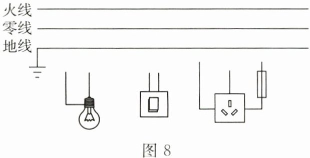 18. 请将图8所示元件正确连入家庭电路中,开关控制灯泡,插座独立工作。