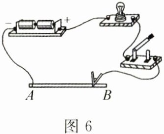 17. 如图6所示,AB为一根铅笔芯,闭合开关后,小灯泡发光,当夹子左右移动时,小灯泡的亮度会发生变化。导致铅笔芯接入电路的电阻发生变化的主要因素是导体的
